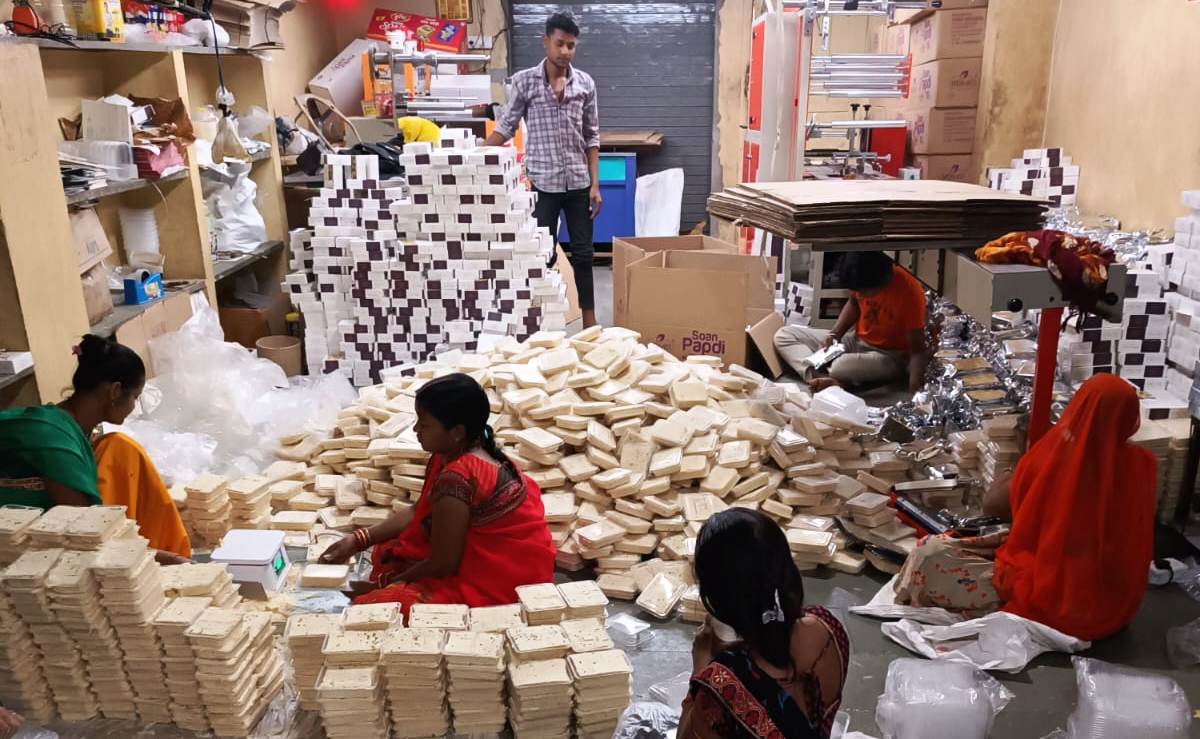 मौके पर गंदगी के बीच में सोनपापड़ी का निर्माण किया जा रहा था। संग्रहित सोनपापड़ी एवं सोन पापड़ी निर्माण में प्रयुक्त होने वाले खाद्य पदार्थ मैदा, बेसन एवं पाम तेल के कुल चार नमूने लिए गए। खाद्य पदार्थ सोनपापड़ी को रिपोर्ट प्राप्ति तक जब्त किया गया। जिसकी कुल कीमत 22 हजार रुपए है।