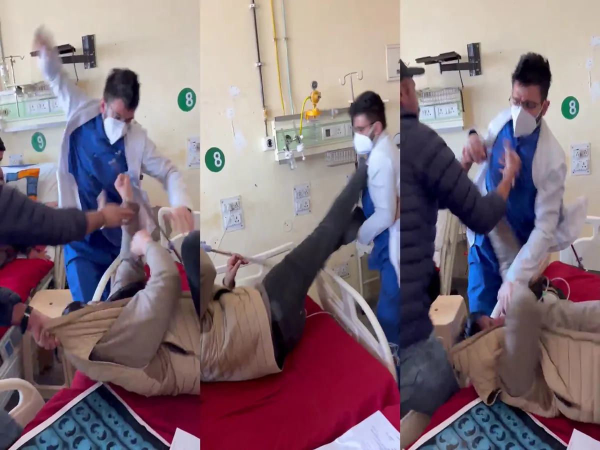 बेड पर लेटे हुए मरीज ने डॉक्टर पर लातें बरसाईं, वहीं डॉक्टर ने भी मरीज पर घूंसे बरसाना शुरू कर दिए। डॉक्टर ने बेड पर ही मरीज की बुरी तरह से पिटाई कर दी।