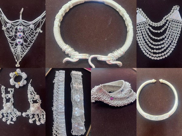 वे बताते हैं कि आदिवासी सगाई की रस्म “जोड़ावनी” में दुल्हन को एक से पांच किलो तक चांदी उपहार में दी जाती है। एक सामान्य दुल्हन के गहनों के संग्रह में सिर से लेकर पैर तक के अलग-अलग आभूषण शामिल होते हैं। आम तौर पर महिलाएं केवल नाक की सोने की अंगूठी पहनती हैं, शेष सभी गहने चांदी के होते हैं।