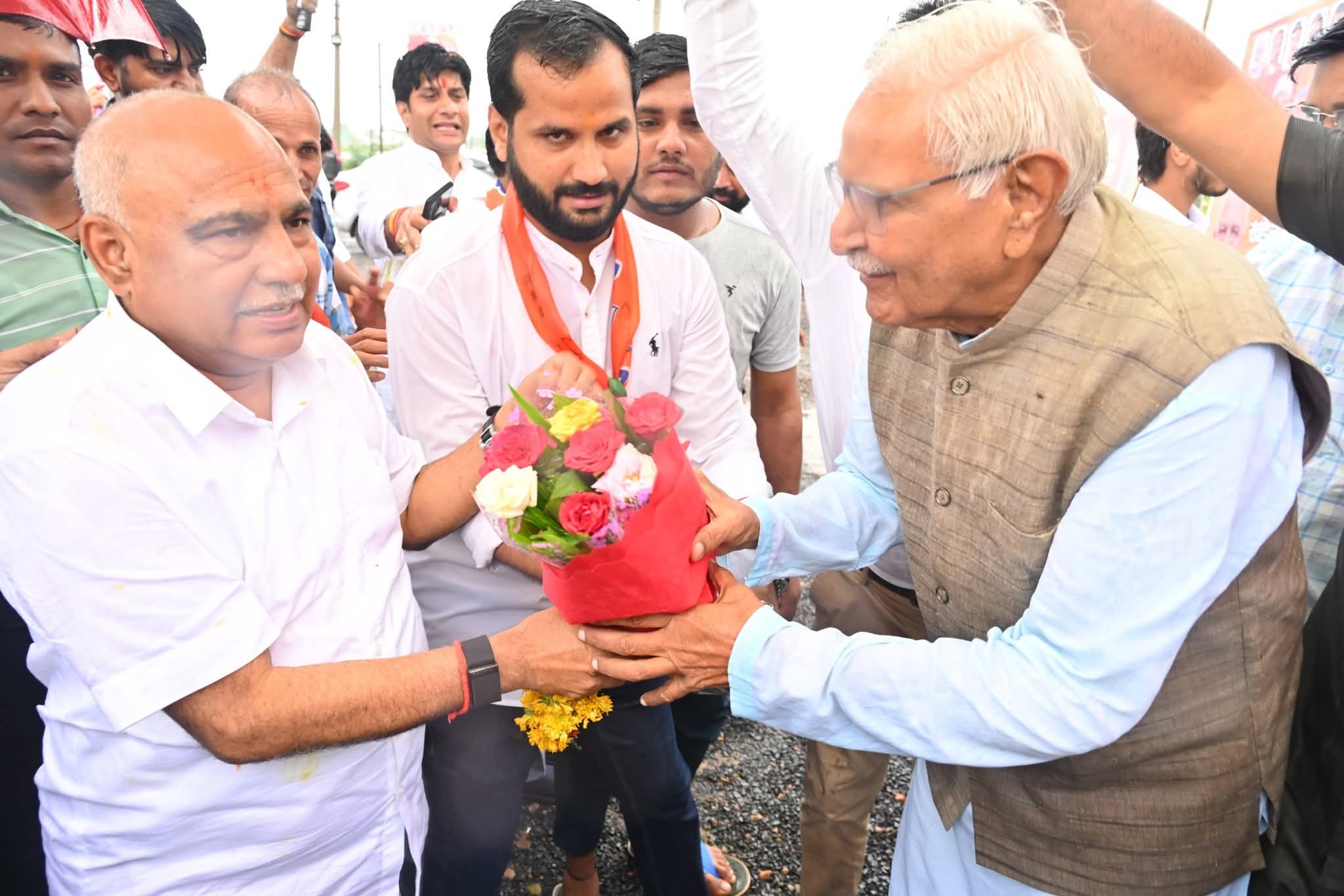 इस मौके पर श्री खंडेलवाल ने कहा कि पुण्य सलिला मां नर्मदा का आशीर्वाद लेने आया हूं। उनकी कृपा सभी पर बरसती रहे; सबका मंगल और कल्याण हो, यही कामना करता हूँ। आप सभी श्यामाप्रसाद मुखर्जी के बताए मार्ग पर चलें ऐसी अपील आप सबसे करता हूं। हालांकि श्री मुखर्जी की जगह पहले वे दीनदयाल जी का नाम बोल पड़े थे पर बाद में उन्होंने अपनी बात को संभाला। इस अवसर पर बारिश के बावजूद बड़ी संख्या में उपस्थित सभी स्थानीय भाजपा नेताओं और कार्यकर्ताओं ने उनका भव्य आत्मीय स्वागत किया। एक बार तो भीड़ को मैनेज कर पंक्तिबद्ध करने हेतु सांसद दर्शन सिंह को बेरीकेट पर खड़ा होना पड़ा। उसके बाद नर्मदापुरम से इटारसी और फिर केसला,सुखतवा तक अलग अलग स्थानों पर उनकी गाड़ी रोककर, स्थानीय भाजपा नेताओं ने अपने साथियों के अलग अलग ग्रुप्स में श्री खंडेलवाल का भव्य स्वागत किया। स्वागत करने वालों में नर्मदापुरम से मध्यप्रदेश तैराकी संघ अध्यक्ष पीयूष शर्मा,नपा इटारसी अध्यक्ष पंकज चौरे,इटारसी भाजपा अध्यक्ष राहुल चौरे, भाजपा पिछड़ा वर्ग प्रकोष्ठ प्रदेश अध्यक्ष अखिलेश खंडेलवाल, वरिष्ठ भाजपा नेता संदेश पुरोहित, पूर्व जिला भाजपा अध्यक्ष माधवदास अग्रवाल,विश्वनाथ सिंघल, शैलेन्द्र दीक्षित पूर्व मंडल अध्यक्ष जोगिंदर सिंह,सतेंद्रपाल सिंह जग्गी,पुरानी इटारसी मंडल अध्यक्ष मयंक महतो आदि शामिल थे। वहीं इटारसी क्रास करके आगे बढ़ने पर केसला मंडल में भी प्रदेशाध्यक्ष हेमंत खंडेलवाल का भव्य स्वागत हुआ।
