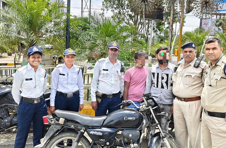 Indore : नागरिकों को यातायात नियमों के प्रति जागरूक करने के लिए शहर में जागरूकता अभियान चलाया जा रहा हैं। इस दौरान नियमों का उल्लंघन करने पर सख्त कार्यवाही की जा रही है। इसके परिणामस्वरूप कई चोरी के वाहन भी पकड़ में आए हैं। रेडिसन चौराहा पर यातायात जोन-2 एसीपी मनोज खत्री के नेतृत्व में जागरूकता अभियान चलाया जा रहा है। इस दौरान सुबह लगभग 10:45 पर यातायात के उप निरीक्षक एमएल अहिरवार व टीम विशेष चेकिंग कर रहे थे। इस दौरान बॉम्बे हॉस्पिटल तरफ से दो युवक अलग-अलग बाइक पर आते दिखाई दिए।