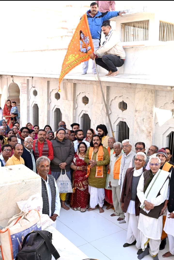 श्री सनातन धर्म सभा अध्यक्ष अनिल झालानी सहित उपस्थित धर्मालुजनों की उपस्थिति में यजमान दम्पत्ति द्वारा ध्वज की पूजन कर ध्वजारोहण किया गया। अध्यक्ष अनिल झालानी, पूर्व विधायक कोमलसिंह राठौर, नवनीत सोनी, डॉ. राजेन्द्र शर्मा, मनोहर पोरवाल, रमेश पाठक, ब्रजेन्द्रनंदन मेहता, पुष्पेन्द्र जोशी, सत्यनारायण पालीवाल, हेमेन्द्र उपाध्याय, नरेन्द्र जोशी, सुरेश दवे, चेतन शर्मा, रमेश व्यास, लालचंद टाक, बद्रीलाल भगत जी, श्रीमती रजनी व्यास, श्रीमती राखी व्यास, सुनीता पाठक एवं महिला मण्डल सहित बड़ी संख्या में धर्मालुजन उपस्थित थे।