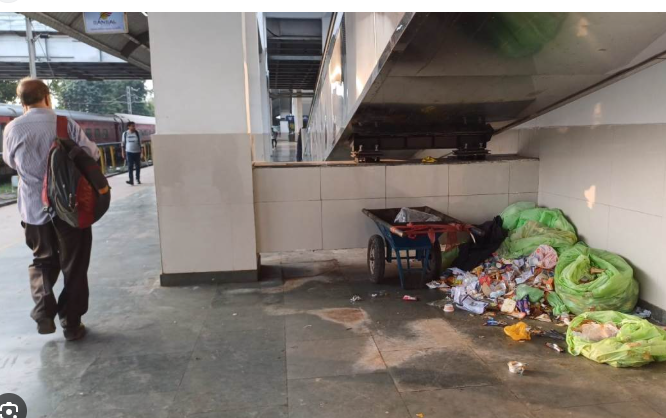 प्लेटफार्म पर कचरे के ढेर: प्लेटफार्म नंबर 4 और 5 के बीच स्थित सीढ़ियों के नीचे काफी कचरा जमा है। यात्रियों की शिकायत के बावजूद स्थिति जस की तस बनी हुई है। कूड़ादान अक्सर भरे रहते हैं, जिससे लोग आसपास ही कचरा फेंक देते हैं। यह कचरा हवा और यात्रियों की आवाजाही से पटरियों तक पहुंच जाता है।