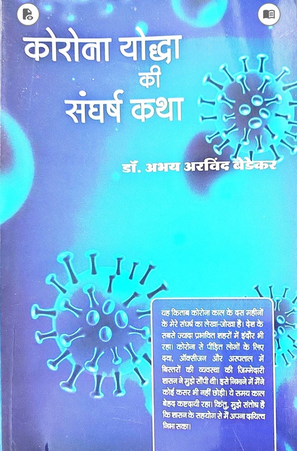 डॉ. अभय अरविंद बेडेकर द्वारा लिखित ‘कोरोना योद्धा की संघर्ष कथा’ में एक पूरे युग को त्याग, समर्पण, कर्त्तव्यनिष्ठा, सकारात्मकता और एक योद्धा की दृष्टि से बहुत ही करीब से जिया जा सकता है। इस पुस्तक के जरिए हम अलग-अलग तरह के योद्धाओं को करीब से देखते हैं। इनमें कोरोना के मरीज बनकर जीवन संघर्ष की कथा लिखने वाले योद्धा हैं। इसमें कोरोना से मरीजों को बचाने के लिए और उनके इलाज में कोई कमी न रह जाए, इसके लिए अपने परिवारों की चिंता न करते हुए रणभूमि में तैनात रहे प्रशासनिक, पुलिस और स्वास्थ्य अमले सहित स्वैच्छिक सेवा संगठनों से जुड़े वह लाखों योद्धा शामिल हैं जो कोरोना की दोनों लहरों में हर पल सेवा में लगे रहे। इनमें सरकार और विपक्ष में शामिल वह सभी राजनेता भी कोरोना योद्धा के रूप में शामिल रहे, जिन्होंने जनसेवा में सबकी परवाह करने के लिए कभी मैदान नहीं छोड़ा। तो मीडिया के साथी भी कोरोना योद्धा बनकर खबरों के मोर्चे पर डटे रहे और हर मुसीबत में पीड़ितों के साथ खड़े रहे।