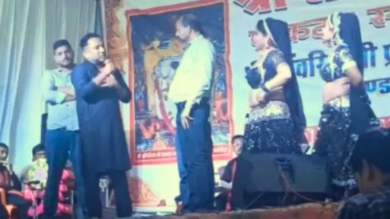 इस वीडियो में दिखता है कि मंच पर कुछ महिला डांसर खड़ी हैं. कार्यक्रम के अन्य कलाकार और आयोजक भी हैं. स्टेज पर एक व्यक्ति नाराज़ नज़र आ रहा है जो एक शिक्षक है. उसके हाथ में माइक है और वह कहता है कि इस कार्यक्रम को यहीं बंद किया जाए. वह कहता है कि कलाकार तेजाजी महाराज, रामदेव बाबा और जया किशोरी के भजन गाएं. वह आदेश देने के लहजे में कहता है,”कौन सा भजन गाओगे? सिर्फ़ सांवलिया सेठ के भजन गाओगे.”