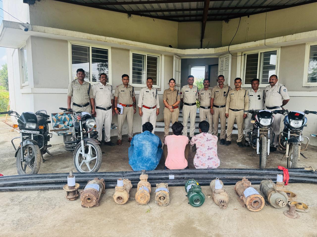 चोरी की मोटरसाइकिल और विद्युत मोटरों सहित अन्य सामग्री बरामद तीन गिरफ्तार
