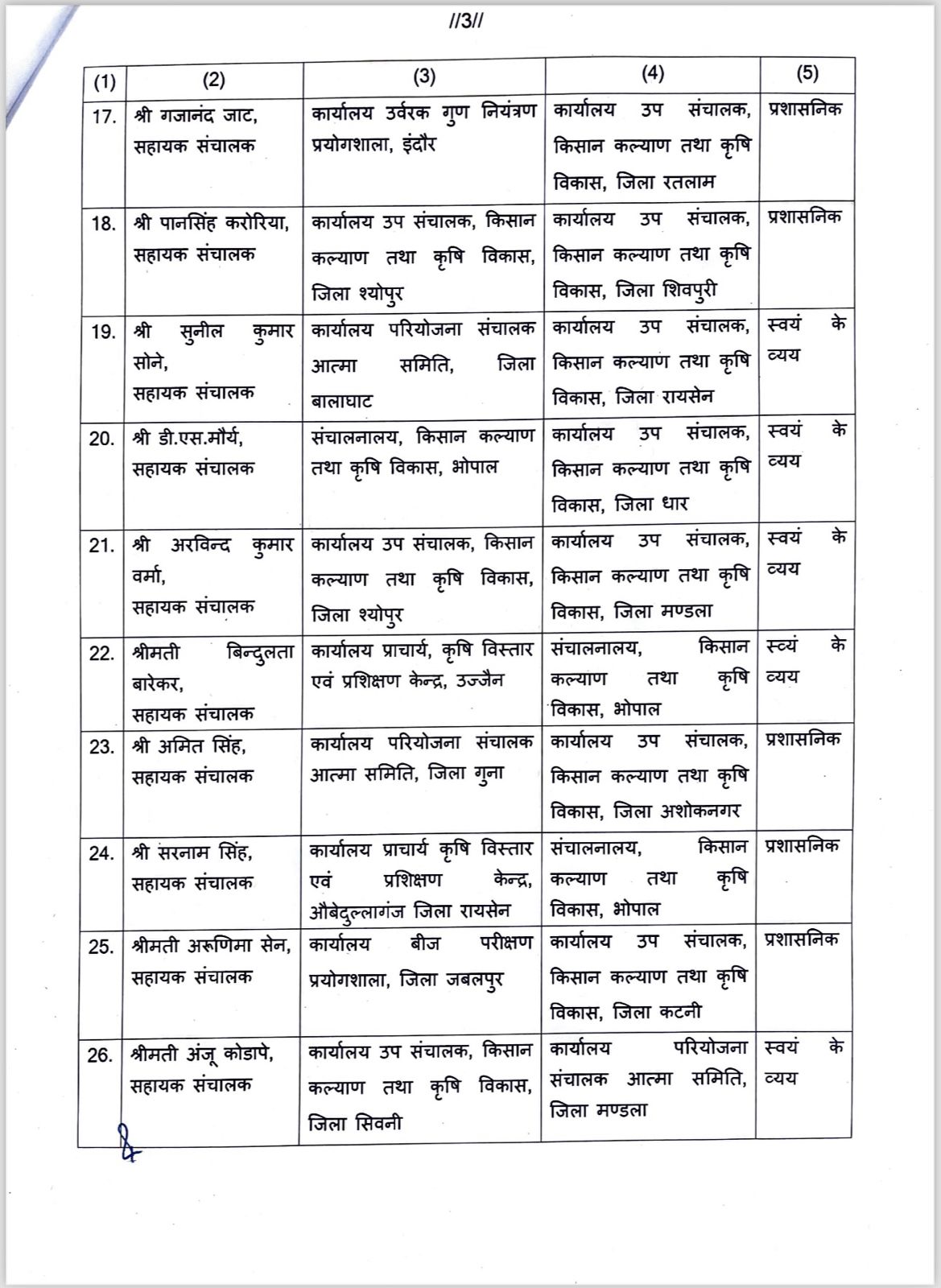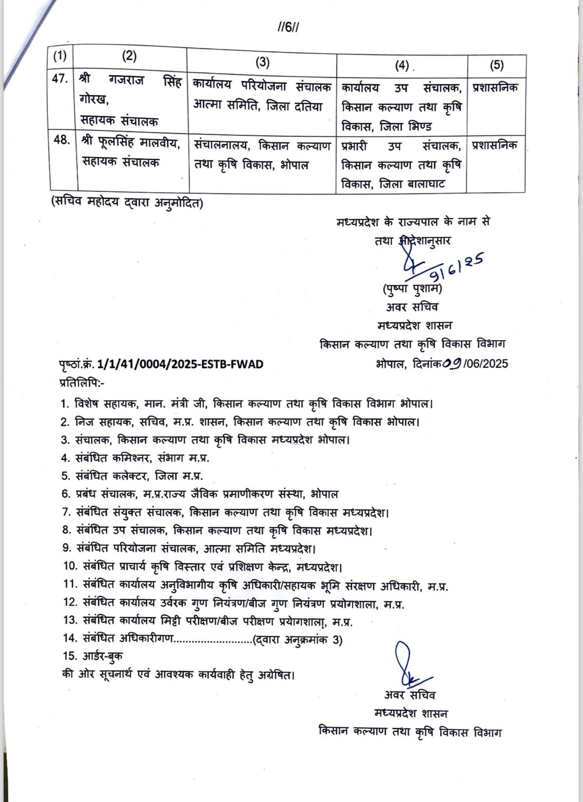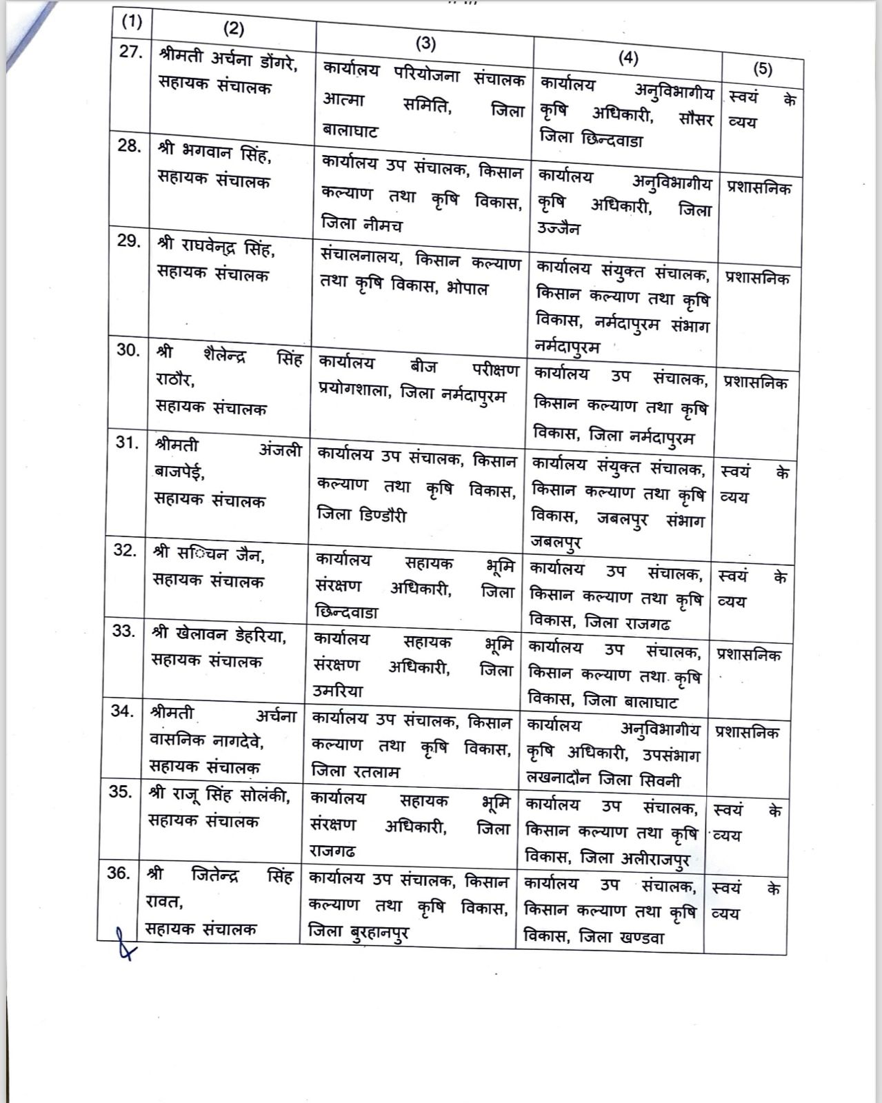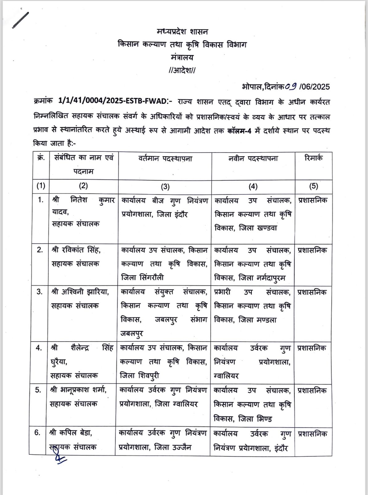 Transfer in Agriculture Department: कृषि विभाग में 48 सहायक संचालकों के तबादला आदेश जारी