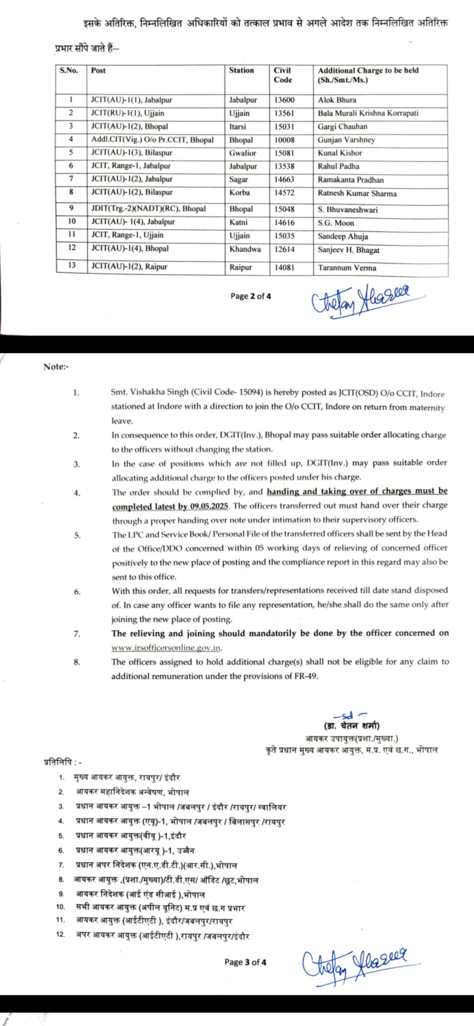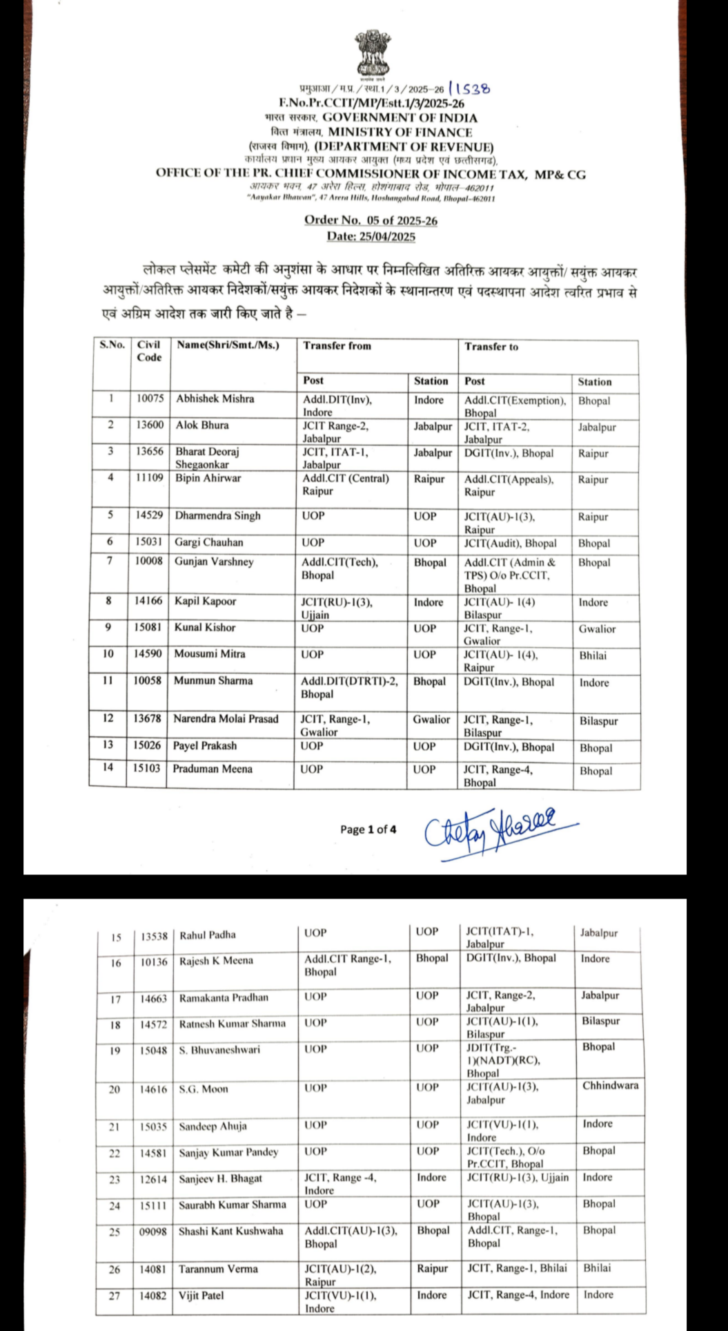 प्रधान मुख्य आयकर आयुक्त मध्यप्रदेश और छत्तीसगढ़, भोपाल के कार्यालय द्वारा आज ये आदेश जारी किए गए हैं।