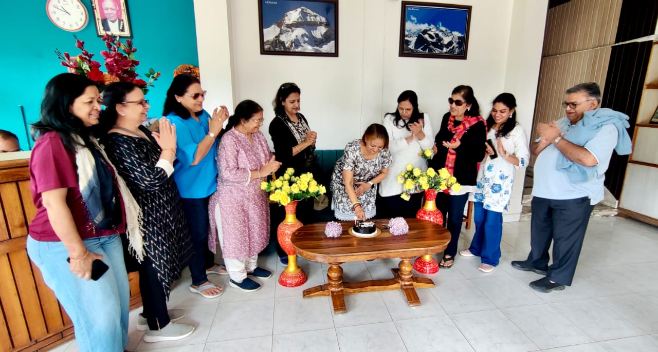 हमारी ग्रुप लीडर उषा भाभी का जन्मदिन होटल की लॉबी में केक-कटिंग और आत्मीय शुभकामनाओं के साथ मनाया गया। उस छोटे-से हॉल में जो आत्मीयता फैली, उसने उसे किसी पारिवारिक उत्सव-स्थल में बदल दिया।