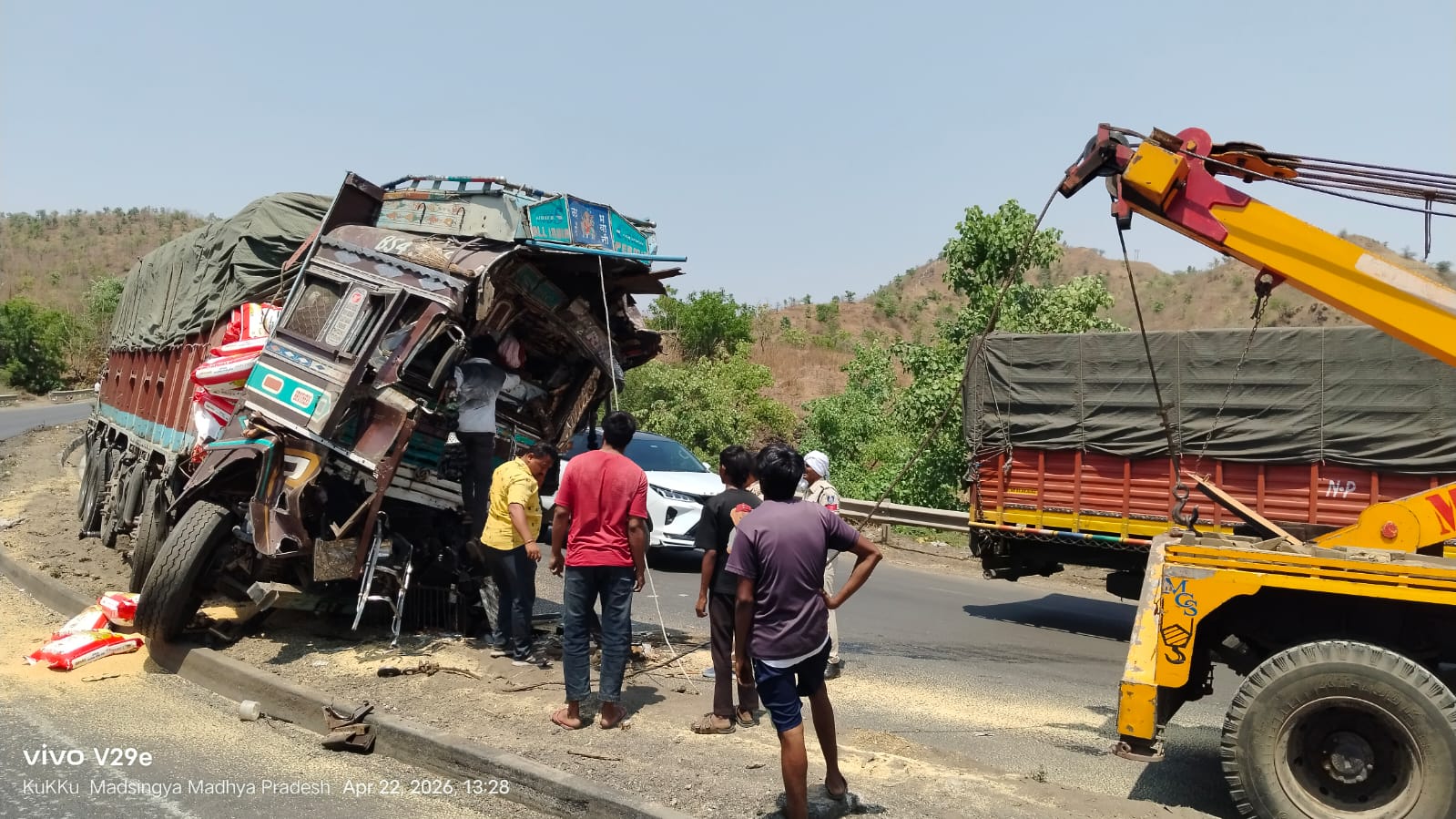 अधिकारियों के अनुसार, टक्कर के बाद ट्रक का अगला हिस्सा पूरी तरह क्षतिग्रस्त हो गया और दोनों लोग केबिन में फंस गए। मौके पर क्रेन बुलाकर करीब एक घंटे की मशक्कत के बाद शवों को बाहर निकाला गया।