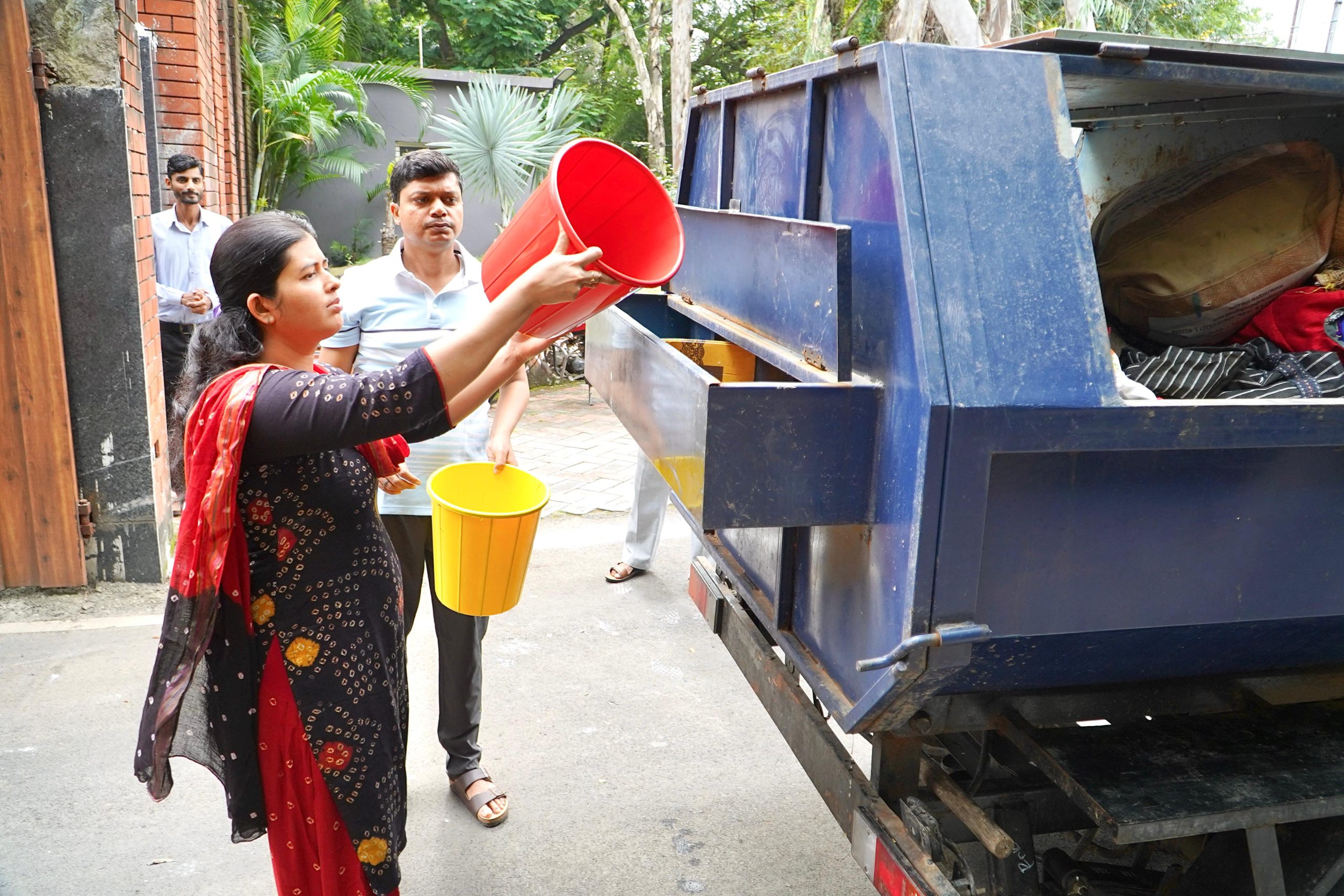 उज्जैन: स्वच्छता सेवा पखवाड़े के अंतर्गत कलेक्टर श्री रोशन कुमार सिंह और उनकी पत्नी श्रीमती प्रिया सिंह ने कलेक्टर बंगले से गीला और सूखा कचरा अलग-अलग कचरा गाड़ी में डालने का कार्य अपने घर से किया।