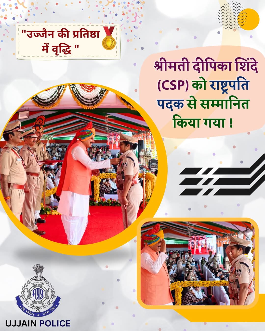 Ujjain नगर पुलिस अधीक्षक दीपिका शिंदे राष्ट्रपति पदक से सम्मानित 🎖️