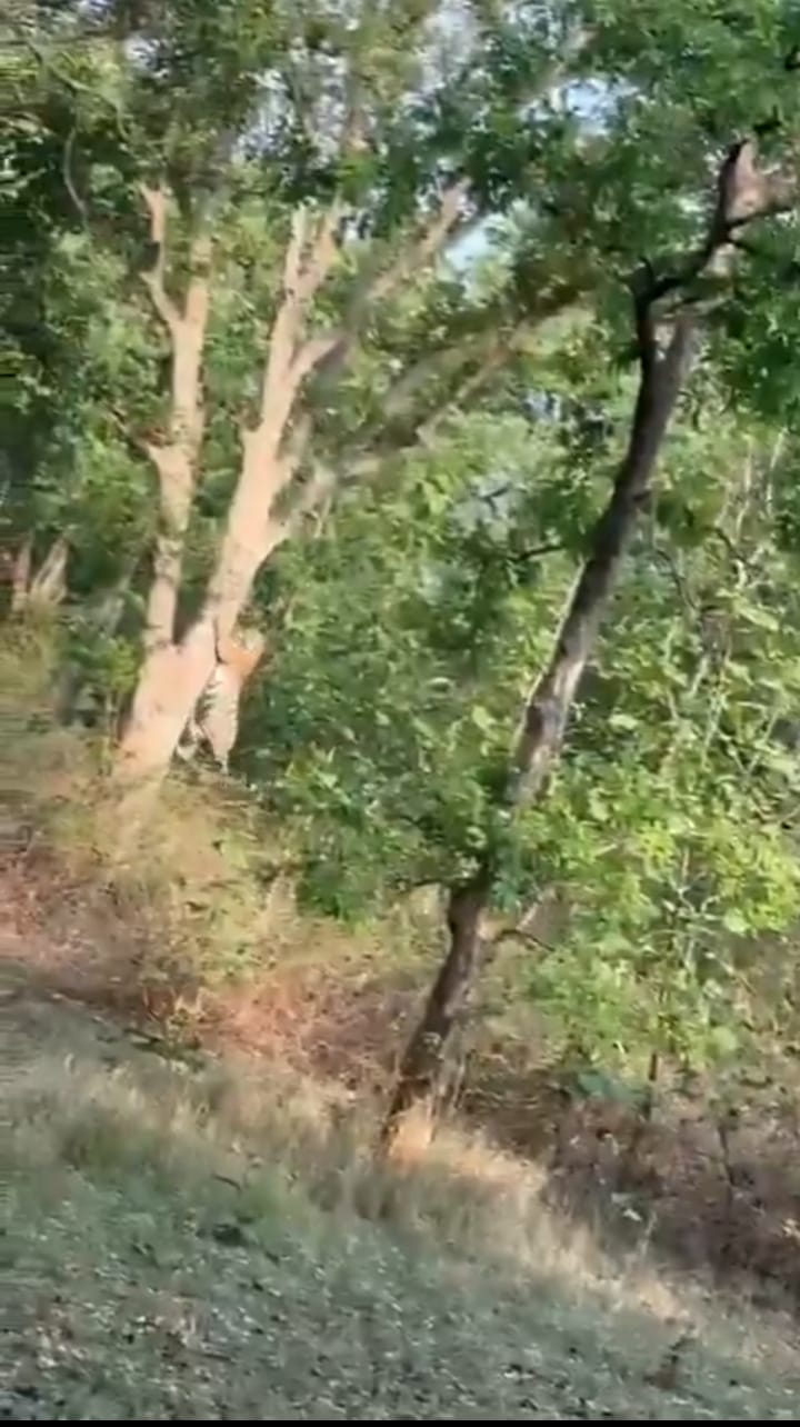 वीडियो में एक तेंदुआ बाघ से जान बचाकर भागता है और बाघ उसका पीछा करता है। इसी बीच तेंदुआ तेजी से दौड़ाता हुआ पेड़ पर चढ़कर अपनी जान बचाता है। टाईगर भी पेड़ पर चढ़ने का प्रयास करता है लेकिन ऊपर चढ़ नहीं पाता, जिससे तेंदुआ सकुशल बच जाता है।