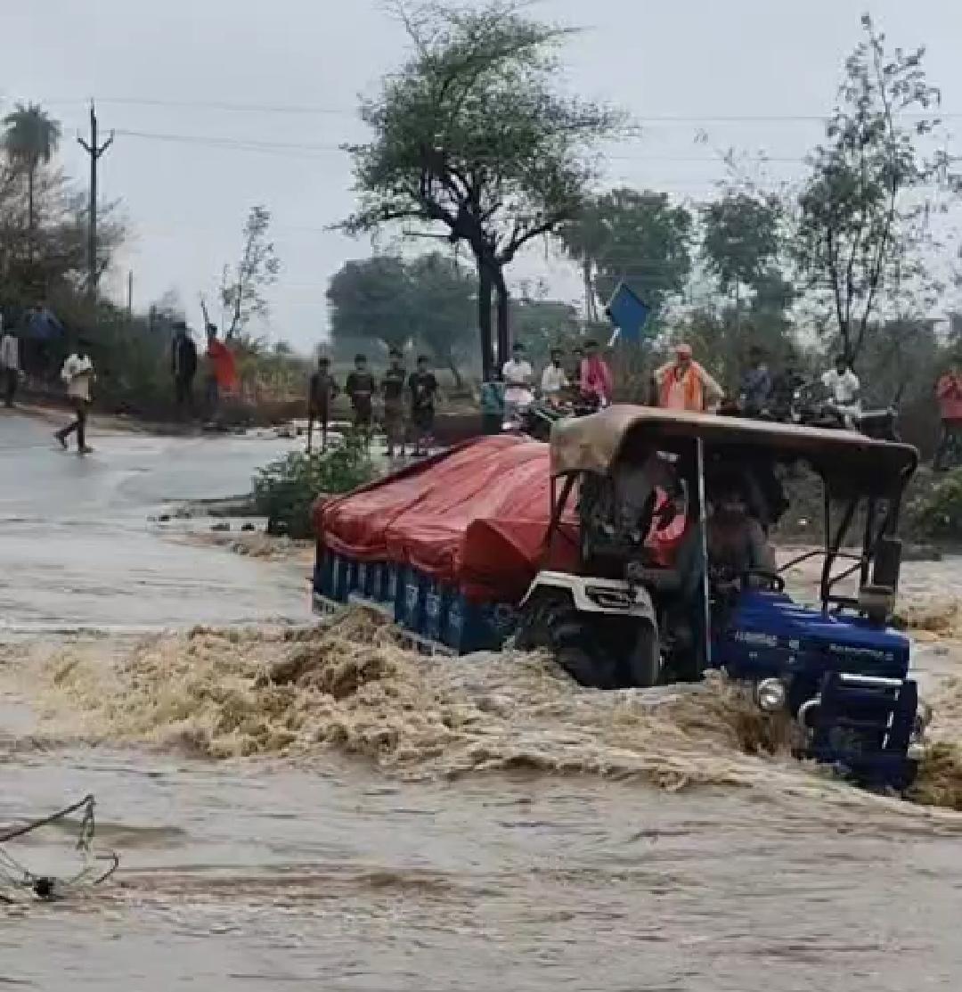 शिवपुरी जिले के सिरसौद थाना क्षेत्र अंतर्गत कुंअरपुर गांव के पास शुक्रवार सुबह बड़ा हादसा टल गया।रातभर हुई बारिश के बाद उफान मारते नाले को पार करने की कोशिश में एक ट्रैक्टर-ट्रॉली बह गई।