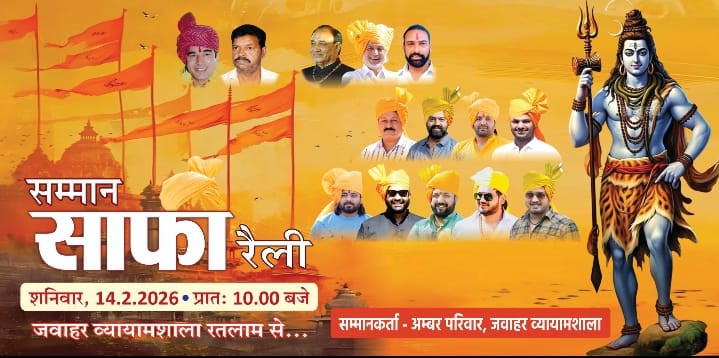 Ratlam : महाशिवरात्रि के पावन पर्व के उपलक्ष्य में प्रतिवर्षानुसार इस वर्ष भी शहर में भक्ति और उत्साह का अनूठा संगम देखने को मिलेगा, जवाहर व्यायामशाला परिवार (अम्बर ग्रुप) द्वारा दौलत जाट (पहलवान) के नेतृत्व में आगामी 14 फरवरी, शनिवार को विशाल ‘सम्मान साफा (वाहन) रैली’ का आयोजन किया जा रहा है। रैली में हजारों की संख्या में युवा पारंपरिक साफा पहनकर शिरकत करेंगे।