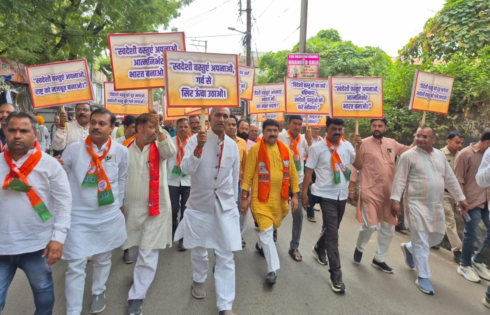 कार्यक्रम पश्‍चात सभी अतिथिगण एवं पदाधिकारीगण रेली के माध्‍यम से स्‍वदेशी वस्‍तु अपनाओं आत्‍मनिर्भर भारत बनाओं कि तखतिया लेकर गॉंधी चौराहे पर लगाई गई स्‍वदेशी वस्‍तुओं कि प्रदर्शनी पर पहुचे जहॉं राज्‍यसभा सांसद , भाजपा जिलाध्‍यक्ष , जिला पंचायत अध्‍यक्ष, सुवासरा विधायक, नपा. अध्‍यक्ष सहीत अनेक पदाधिकारीयों द्वारा स्‍वदेशी सामग्री जिनमें बॉंस से संबधित, सुती धागे से निर्मित गायत्री परिवार द्वारा स्‍वनिर्मित उत्‍पाद , मिट्टी से बने उत्‍पाद , झाडु , पारमपरिक वाद्धययंत्र , मिनाकारी उत्‍पाद, लाख कि चुडि़यॉं आदि कि खरीदारी कि गई।