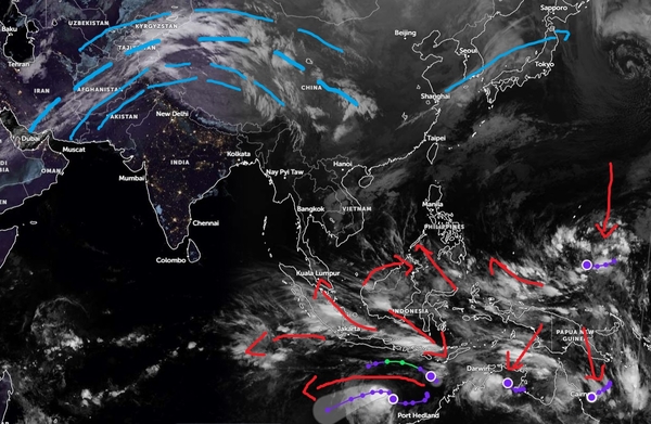दक्षिण महासागर में श्रीलंका और ऑस्ट्रेलिया के मध्य 4 चक्रवात सक्रिय हैं और एक फिलीपींस के पास भी है, इससे हिन्द महासागर में उथल -पुथल के चलते पूर्व से पश्चिम की ओर बादलों की रुकावट बनी हुई है। इसके चलते भारत के दक्षिण राज्यों में मौसम खुला होकर भ्रमित बना हुआ है। वहीं उत्तर में पश्चिमी हवाओं के ऊंचा बहकर पूर्व की ओर जाने से भारत के मध्य के राज्यों में भी मौसम में उतार- चढ़ाव बना हुआ है। जिसके चलते प्रदेश के मध्य, पश्चिम और पूर्व के राज्यों में दिन गर्मी का आलम पनप रहा है।
