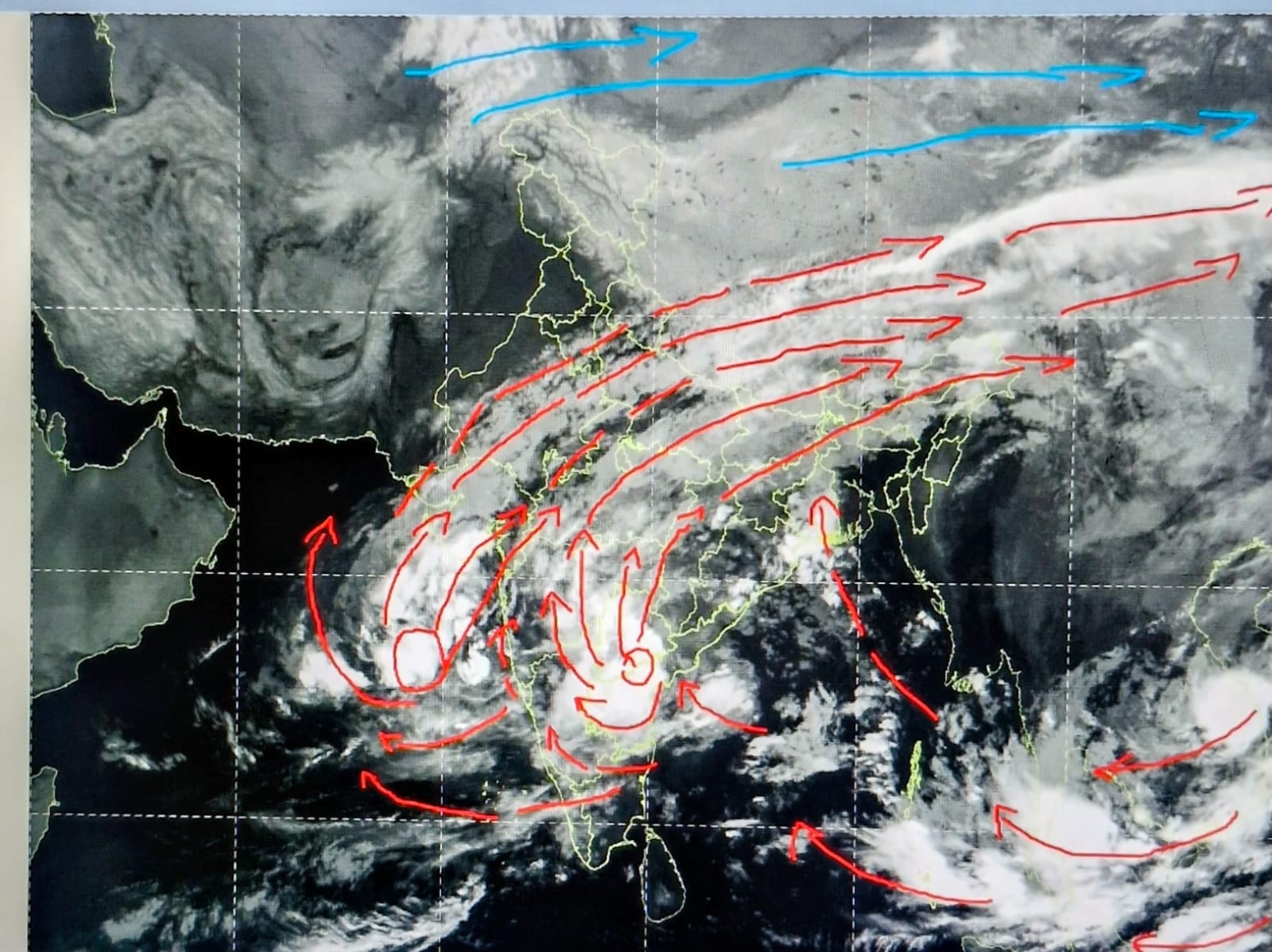 इसके असर से आज तेलंगाना के पूर्व हिस्से में भारी बारिश होगी। खमम, हैदराबाद, के सामुद्रम आदि स्थानों पर तूफानी बारिश होगी। इसका आंशिक प्रभाव महाराष्ट्र के पूर्व और छग के दक्षिण पश्चिम में रहेगा। बादलों का फैलाव मध्य प्रदेश से बिहार और उत्तर पूर्वी राज्यों तक रहेगा।