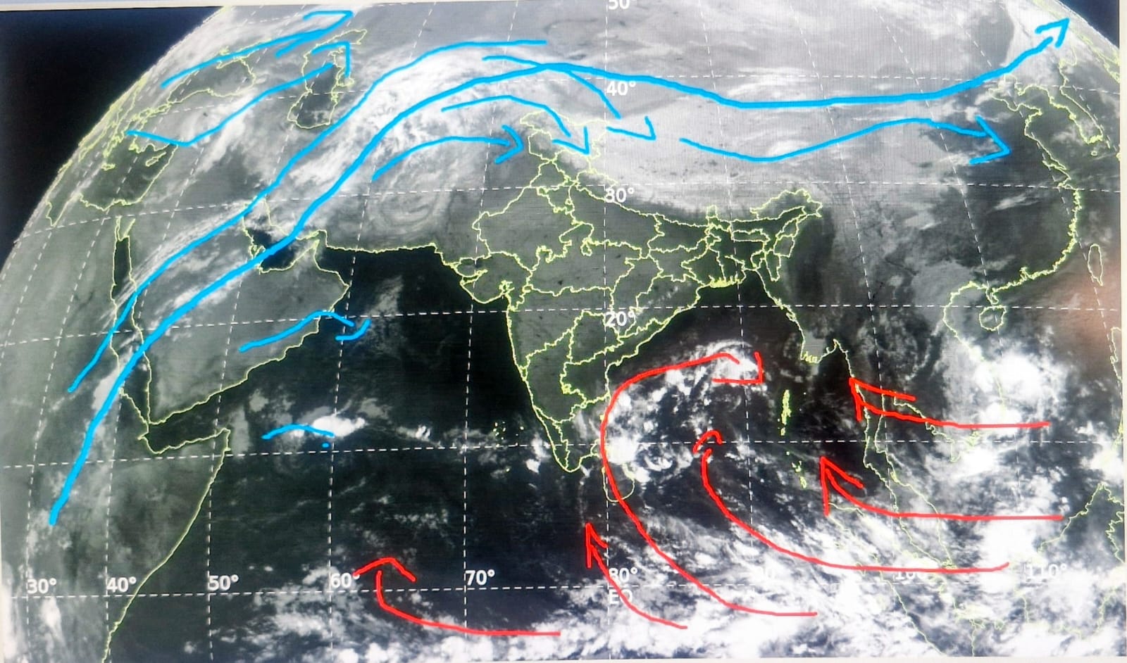 पश्चिमी हवाओं का प्रहार अब और तेज होगा। बादलों की नई चेनल सूडान से शुरू होकर उत्तर -पूर्व दिशा से ईरान, उज़्बेकिस्तान से होकर भारत के शीर्ष से गुजर रही है। संभावना है बादलों का असर लद्दाख, कश्मीर में होगा और लेह में बर्फबारी की संभावना बनेगी। ये सिलसिला अगले 2 से 3 दिन रह सकता है।