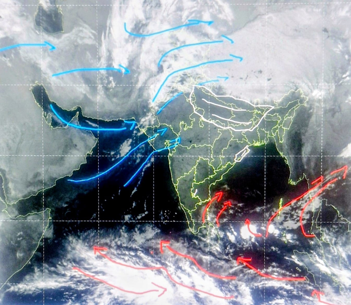 उत्तर भारत में भी ठंड का विकराल रूप चल रहा है। लेह में बर्फबारी चल रही है और कश्मीर के श्रीनगर में गहरे बादल हैं जिनसे बारिश की संभावना रहेगी। यही स्थिति हिमाचल प्रदेश, उत्तराखंड, पंजाब में भी रहेगी। हरियाणा, राजस्थान में आंशिक इलाकों में बादल छाएंगे। पश्चिमी विक्षोभ के असर से दक्षिण पूर्वी हवाओं का रुख पूर्व दिशा में बना रहेगा।
