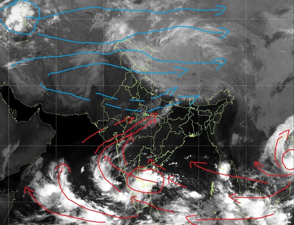 इन राज्यों में भारत के पूर्वी इलाके में सक्रीय दो चक्रवात का असर देखने को मिल रहा है। वियतनाम तक पहुंच गया चक्रवात फेंगशेन की हवाएं भारत की बंगाल की खाड़ी में बादलों को इकट्ठा कर रही है। वहीं चेन्नई के पास इन्वेस्ट 93B चक्रवात की हवाएं भी बादलों को दक्षिण राज्यों की तरफ धकेल रही है। यहां से बादल अरब सागर की ओर होते हुए महाराष्ट्र की तरफ अग्रसर हैं।
