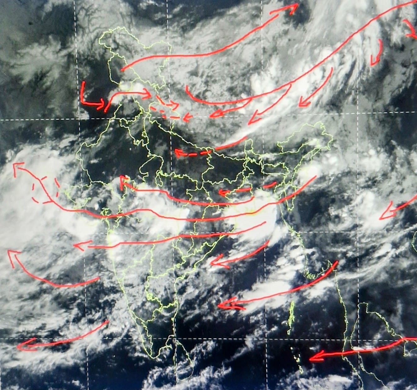 बादलों की लहर अब उत्तर पूर्वी भाग से तिब्बत होते हुए चाइना की ओर चल पड़ी है। वहीं चाइना के हेचि के पास चक्रवात आज अंतिम दौर में होने से बादलों का बहाव भारत के पूर्वी राज्यों में हो रहा है। आज मणिपुर, नागालैंड, त्रिपुरा में तेज बारिश का अनुमान है।