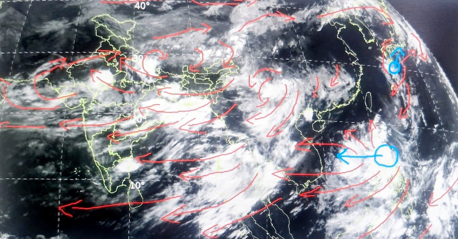 भारत के पूर्व में फिलीपींस, मनीला में चक्रवात का असर है जिसके दबाव से बादल वियतनाम से भारत की ओर कूच करेंगे। इससे बंगाल की खाड़ी में बादलों का जमाव बढ़ेगा।