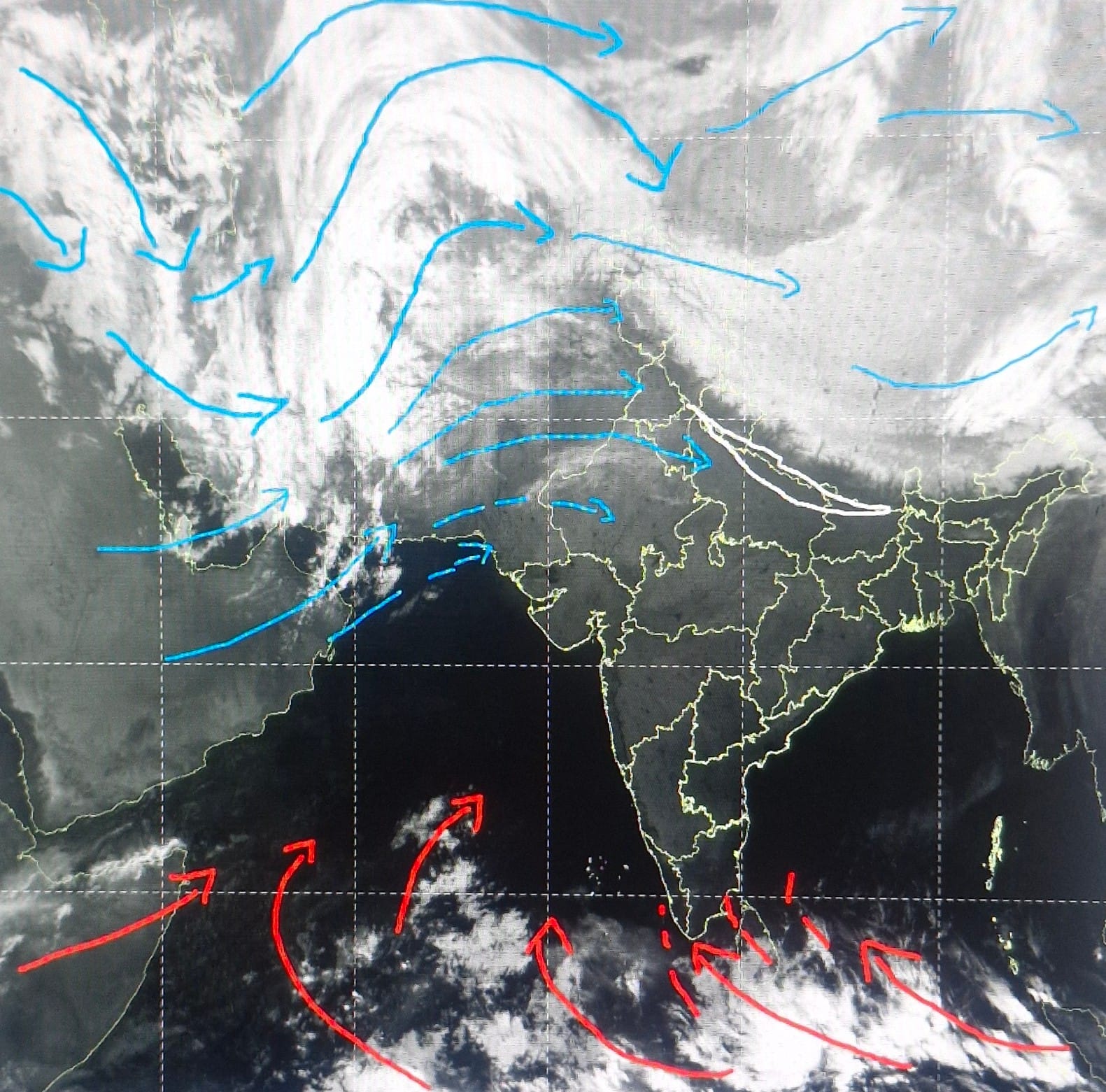 दक्षिण भारत के केरल और तमिलनाडु में बादलों का आगमन पूर्व दिशा से चल रहा है। तमिलनाडु के दक्षिणी भाग में और केरल में अगले 24 घंटों में बारिश हो सकती है।