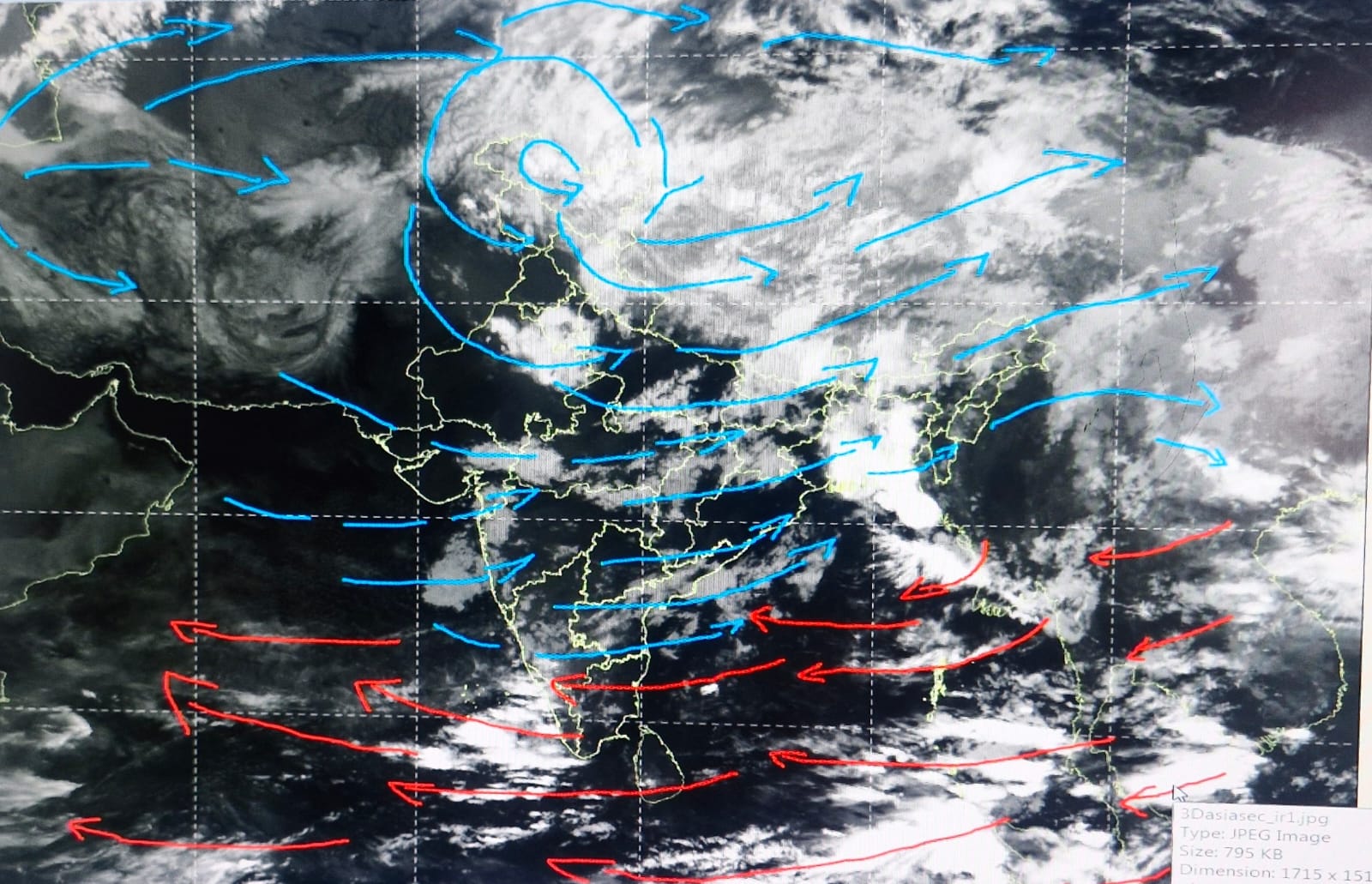 भारत में पूर्व और पश्चिम हवाओं का टकराव है। पश्चिमी हवाएं बलवती होकर उत्तर से दक्षिण तक प्रहार कर रहीं हैं, जबकि पूर्वी हवाएं केवल दक्षिण राज्यों तक सीमित है जो तमिलनाडु और केरल से पश्चिम की ओर बह रहीं हैं। भारत के शीर्ष पर अब भी चक्राकार बादल हैं जो आज लद्दाख, कश्मीर, हिमाचल और उत्तराखंड में हिमपात करेंगे। इसके अलावा उत्तरी राजस्थान, आंशिक पंजाब, हरियाणा, दिल्ली तक ये बारिश करेंगे। दिल्ली में तीन दिन की बारिश के बाद फिर से तापमान 7 जून के बाद 43/44 डिग्री तक जा सकता है।