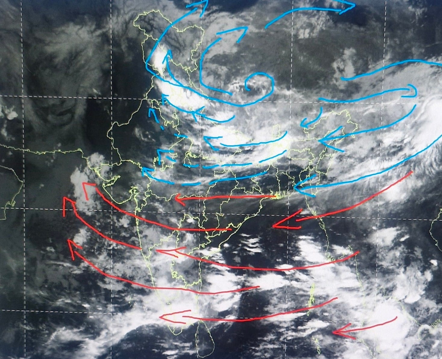 भारत के पूर्वी भाग में सक्रिय चक्रवात का नाम पौड़ूल है जो आज 90 km की रफ्तार में चाइना की तरफ शुक्रवार को पहुंचेगा। इसके चलते पश्चिमी हवाओं संग बादलों का दबाव भारत की ओर पड़ेगा।