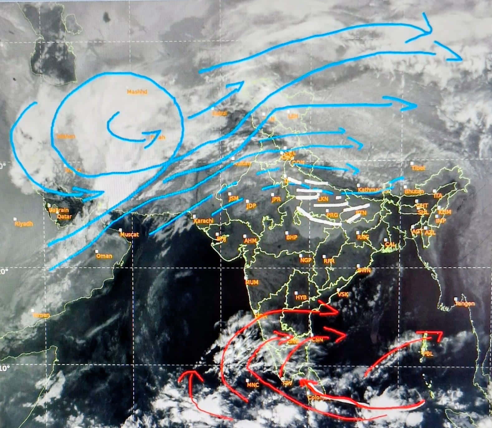 दक्षिण राज्यों में बादलों की लहर गोलाकार है मगर बारिश के आसार कम है।