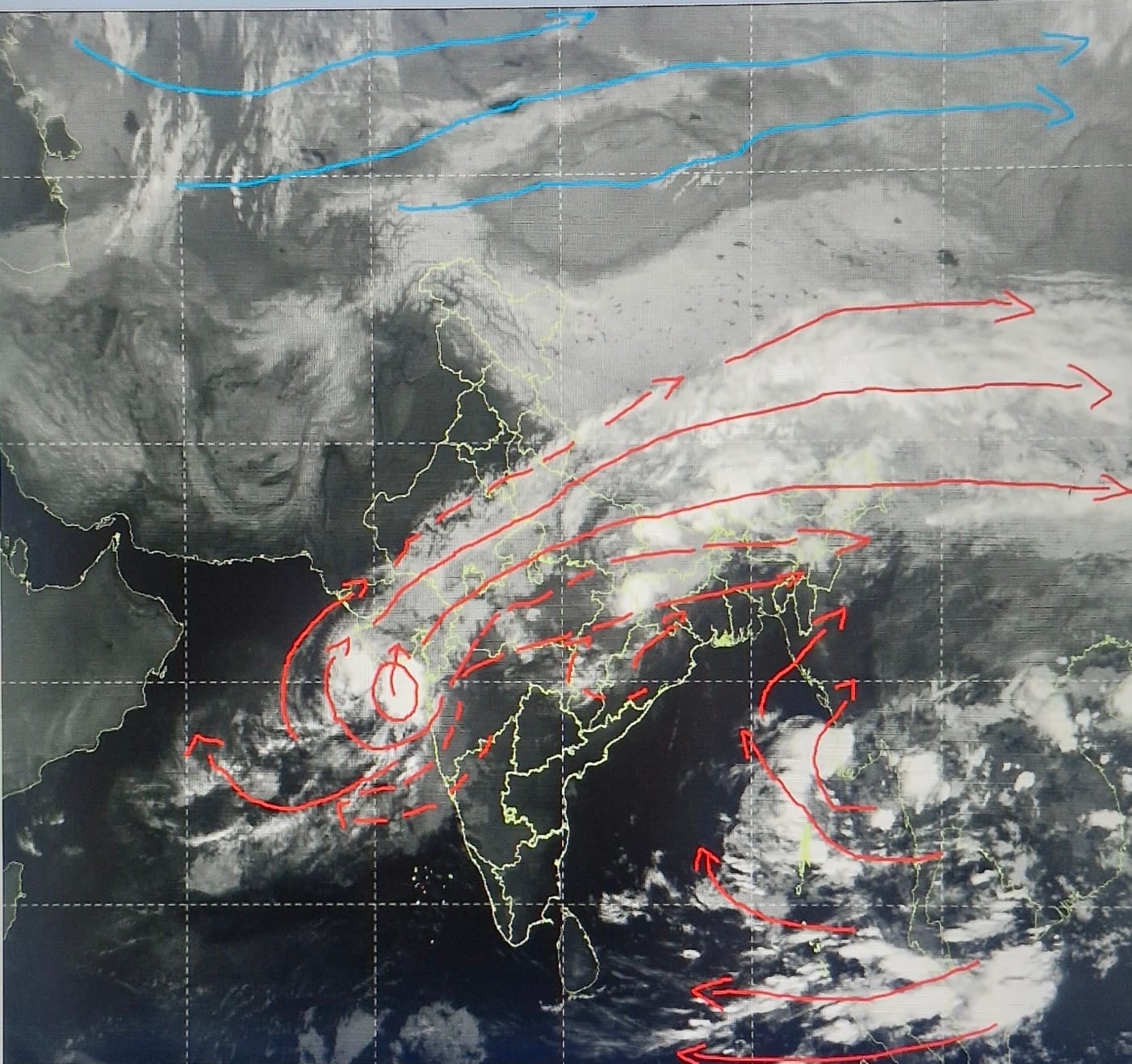 मोंथा तूफान खत्म होते ही अरब सागर के चक्रवात 92A का असर पश्चिमी हवाओं के साथ हावी हो गया है। चक्रवात अब महाराष्ट्र के उत्तर -पश्चिम और गुजरात के दक्षिण समुद्र इलाके के बीच झूल रहा है। इसकी गति कम हुई है लेकिन बादलों का फैलाव अभी भी उत्तर -पूर्व दिशा के राज्यों में है और बादल नेपाल, भूटान से चीन की ओर अग्रसर है। बादलों में ठहराव नहीं होने से बारिश हल्की, सामान्य या फुहारों की तरह चल रही है। जब तक चक्रवात पूर्ण आकार में नहीं या आता या बनने से पहले बिखर नहीं जाता, तब तक इसकी स्थिति से बादलों का घुमाव पश्चिम से उत्तर और उत्तर से पूर्व दिशा की ओर चलता रहेगा।