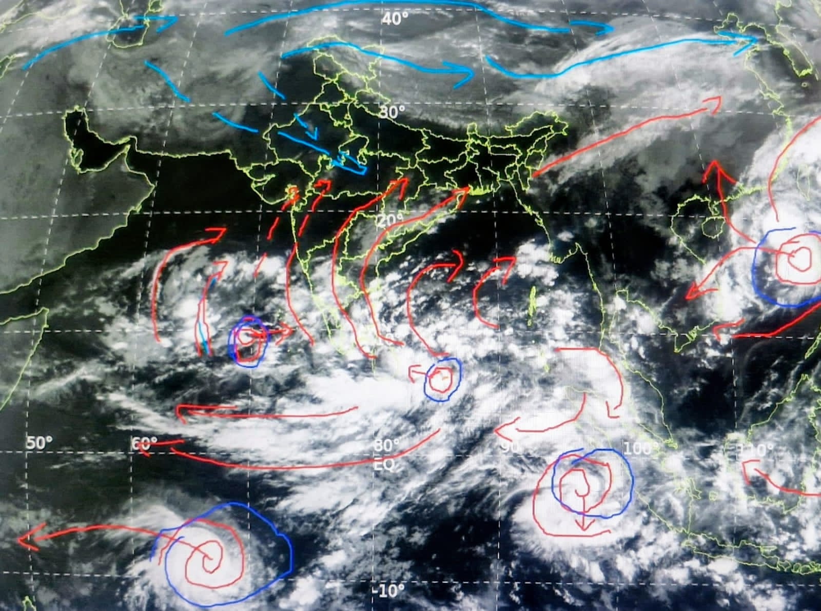हिंद महासागर में इस समय एक साथ चार चार और फिलिपींस में एक चक्रवात सक्रिय होने से काफी उथल-पुथल का दौर चल रहा है। इसके परिणाम मौसम की चाल को बदलते रहेंगे।