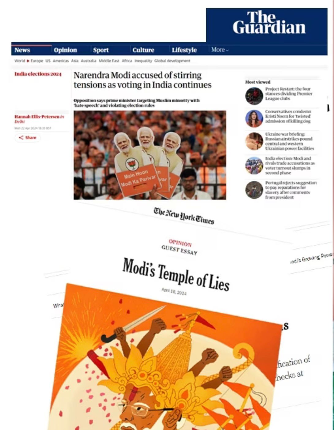 द इकोनॉमिस्ट में मैंने स्वयं पढ़ा कि भारत में वर्तमान चुनाव के परिणाम तो आएँगे, परंतु उनकी राजनैतिक वैधता नहीं होगी। स्वीडन की एक संस्था ने मोदी सरकार के बारे में कहा है कि उसके अत्याचारों के कारण भारत में लोकतंत्र और नागरिक स्वतंत्रता नष्ट हो जाएगी। लंडन की एक संस्था चैथम हाउस ने तो यहाँ तक कह दिया कि भारत का लोकतंत्र केवल पश्चिम की निगरानी में ही चल सकता है। भारत का वर्तमान विपक्ष भी मोदी की तानाशाही और लोकतंत्र ख़तरे में होने की बातें करता है, परंतु यह उनका अधिकार और कर्त्तव्य दोनों है। परंतु पश्चिमी मीडिया का आक्रामक रवैया केवल मोदी सरकार के ही विरुद्ध नहीं है, अपितु वह भारत के उदय के प्रति एक विचित्र भावना से ग्रस्त है।
