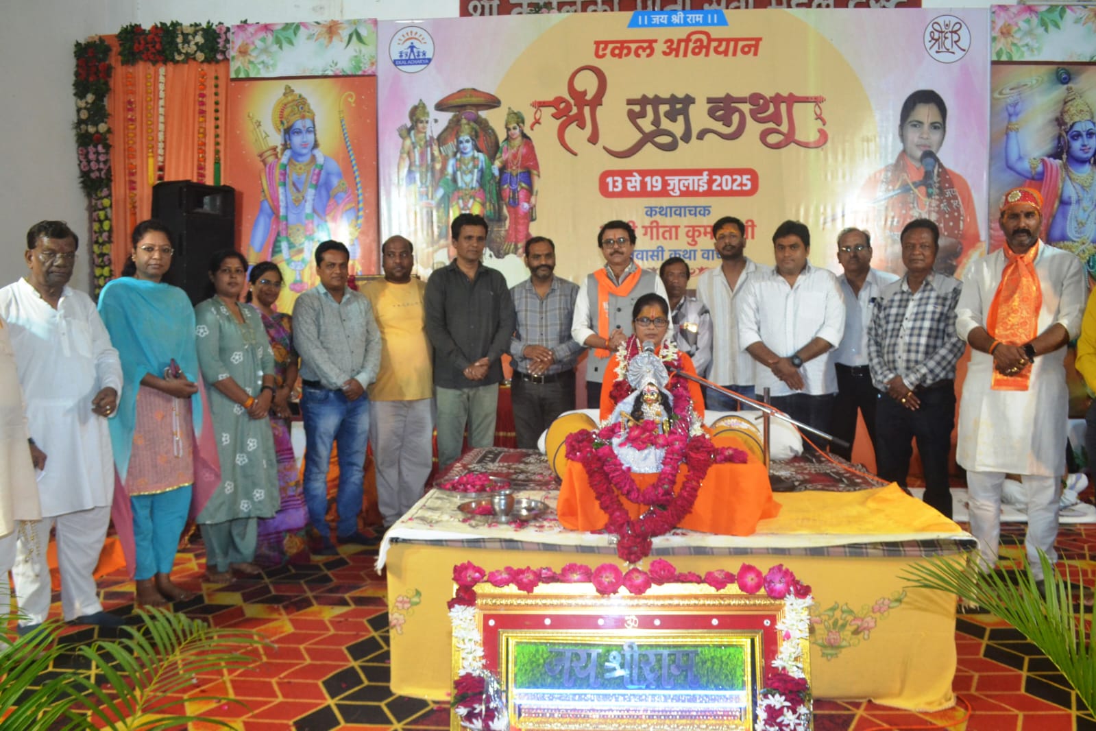 Ratlam : श्री हरि कथा योजना एवं वनवासी ट्रस्ट के तत्वावधान में श्रीराम कथा समिति द्वारा सात दिवसीय श्री राम कथा का आयोजन शहर के कालिका माता मंदिर हॉल में आयोजित किया जा रहा हैं। एकल अभियान एवं श्री हरि कथा आयोजन समिति सचिव अनिल पोरवाल ने जानकारी देते हुए बताया कि श्री राम कथा का वाचन कथा वाचक सुश्री गीता कुमारी (वनवासी कथा वाचक) द्वारा किया जा रहा हैं। सोमवार को पोथी पूजन मे श्री जांगड़ा पोरवाल समाज के डॉक्टर गोपाल मजावदिया, राजेंद्र चौधरी, अखिलेश गुप्ता, अनिल पोरवाल, प्रतीक मजावदिया, विजेंद्र सिंह नानू, मांगीलाल खराड़ी, महापौर प्रहलाद पटेल, भाजपा महामंत्री निर्मल कटारिया, मंडल अध्यक्ष मयूर पुरोहित, पवन सोमानी, विवेक शर्मा, चेतन टाक, धीरज प्रजापत, धर्मेंद्र सिंह देवड़ा, अनीता कटारिया, भावना गुर्जर द्वारा पोथी पूजन किया। तत्पश्चात पंडित अनिरुद्ध मुरारी ने गणपति वंदना की।