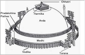 मुख्य स्तूप की गोलाई, उसके ऊपर बना ‘हरमिका’ (ध्यान स्थल) और ‘छत्रावली’ (तीन छतरियों वाली संरचना) हमें ब्रह्मांड की तीन अवस्थाओं (धर्म, ध्यान, निर्वाण) की याद दिलाती है। चारों दिशाओं में बने विशाल तोरण (द्वार) हमें बौद्ध धर्म की जातक कथाओं को जीवंत चित्रों में सुनाते हैं।